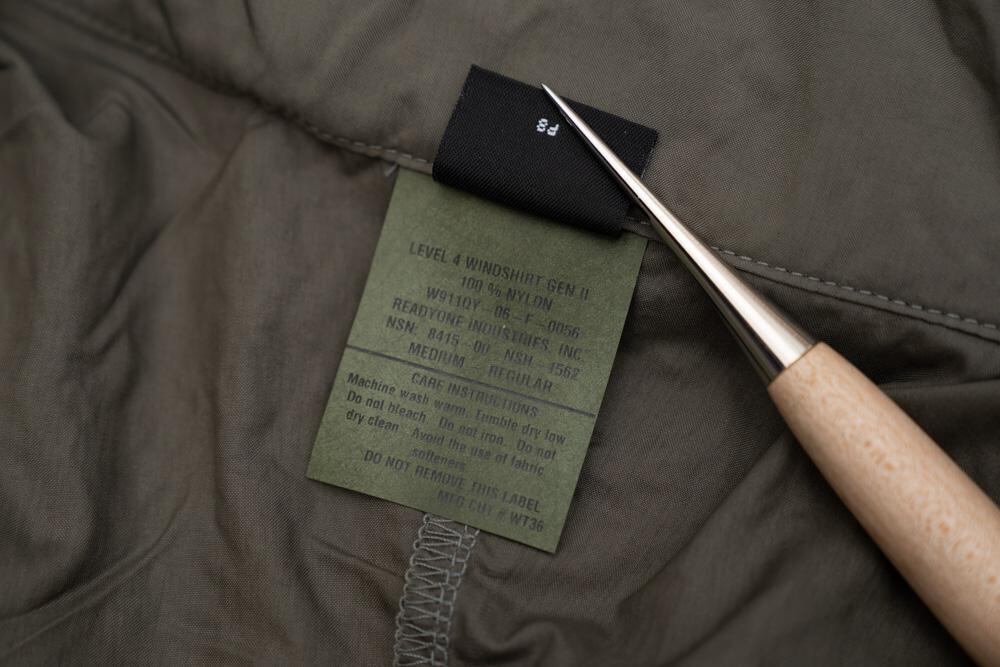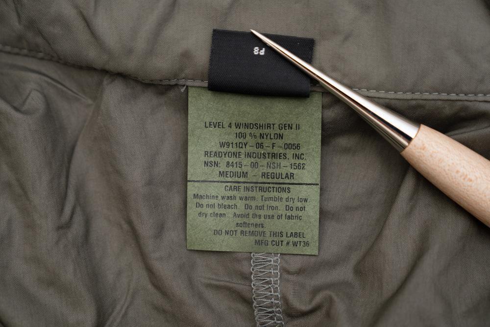 このLevel 4は、軽量かつ通気性に優れたソフトシェルで、寒冷地でのレイヤリングや湿度の高い環境下での行動に最適な設計となっています。米軍SEALsをはじめとする特殊部隊で採用されたものの、高価な素材と精密な作りからごく一部の部隊でしか使用されず、市場でも極めて希少なアイテムとなっています。