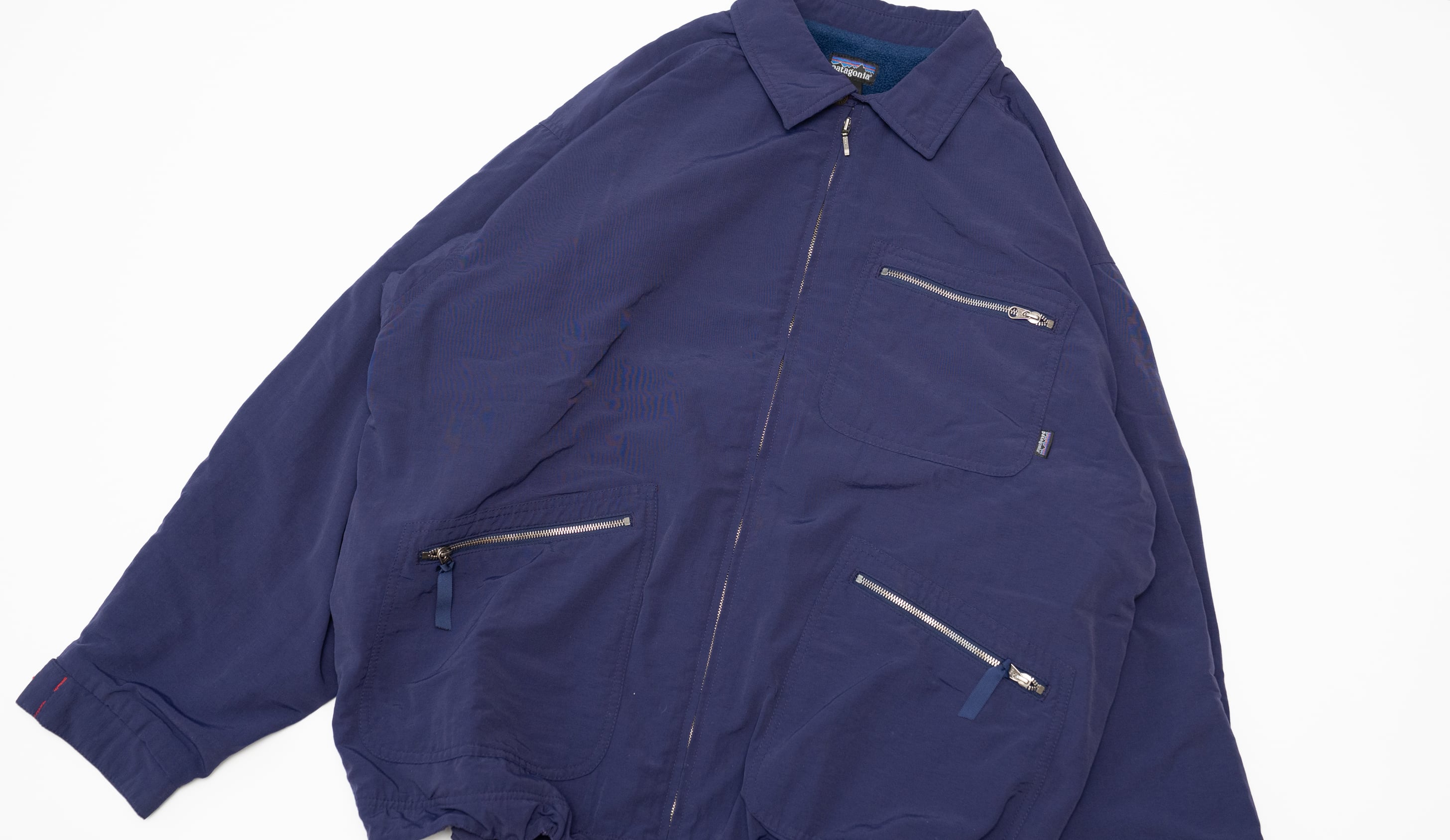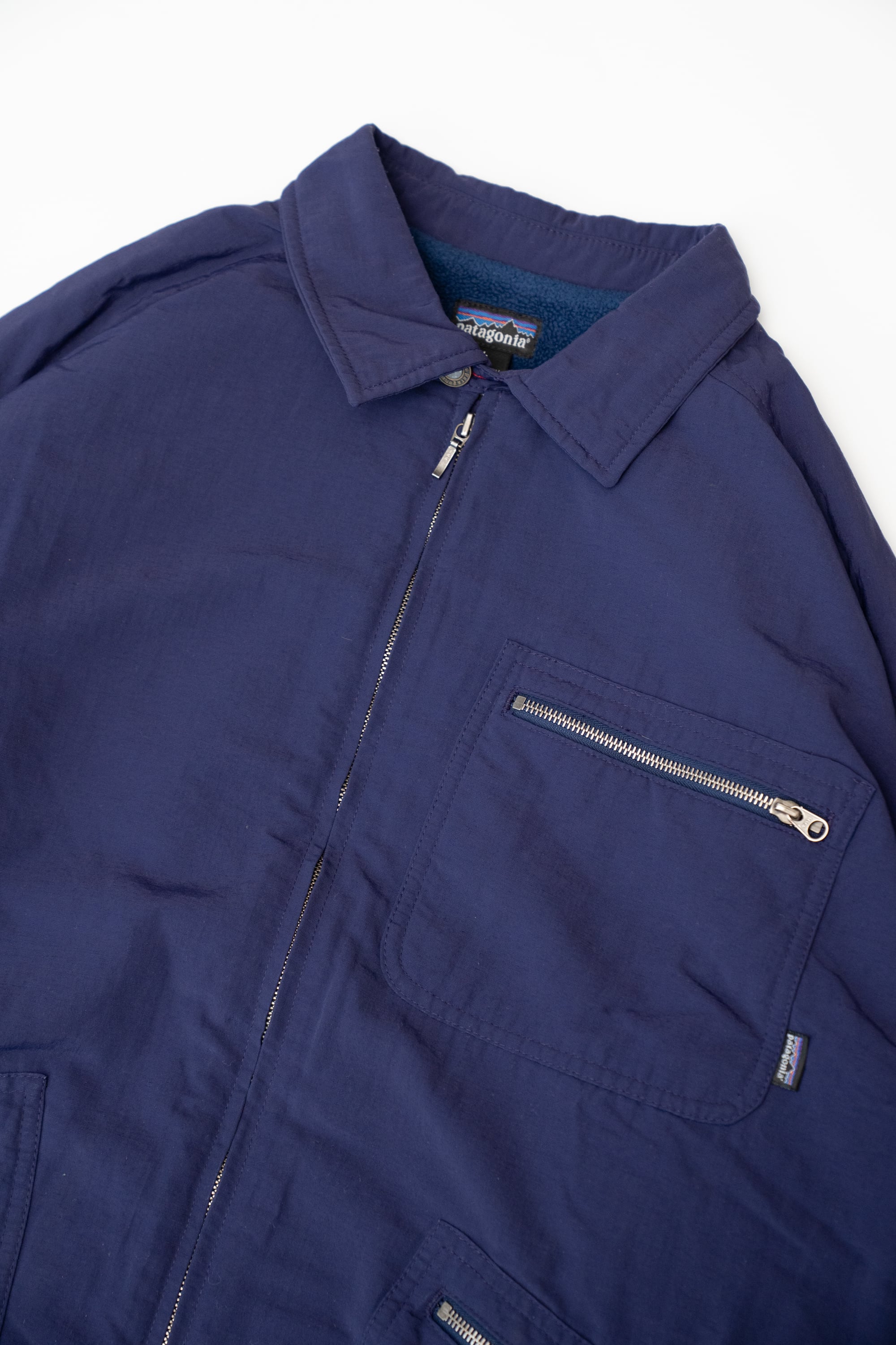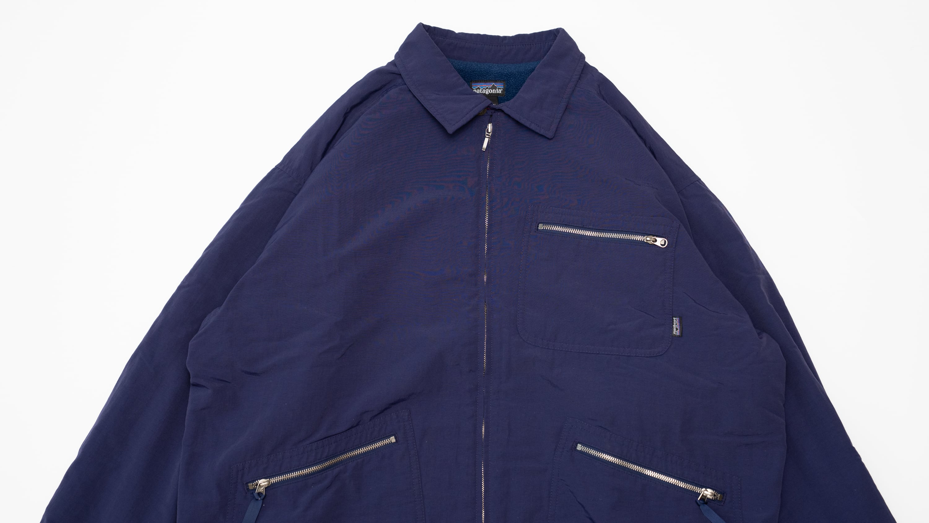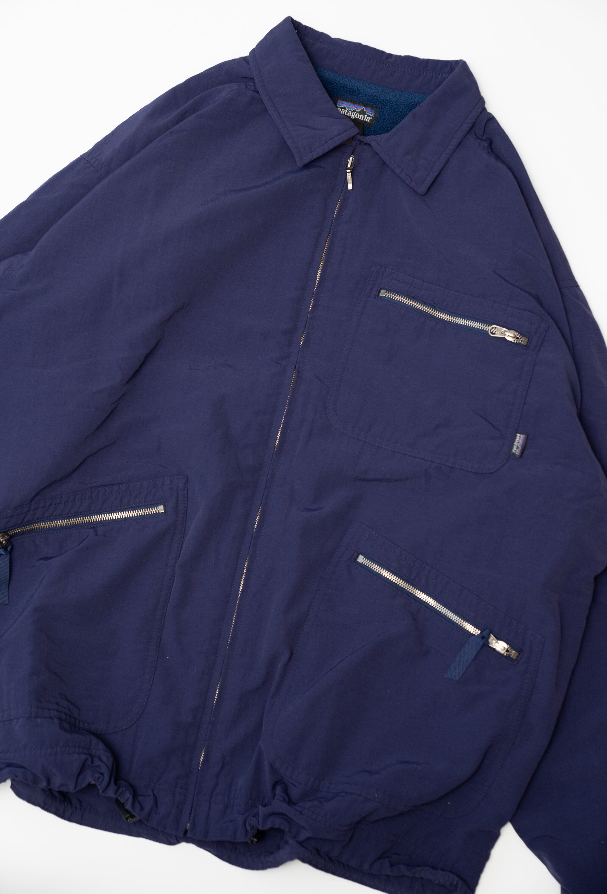 パタゴニアの名作が数々リリースされた黄金期ともいえる時代にリリースされた名作「キャップドビルジャケット」です。外地はナイロンで裏地はネイビーカラーのフリースです。
