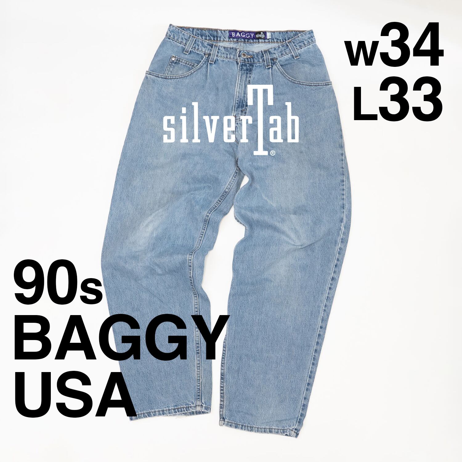 90年代のLEVI'Sの人気ライン「SILVER TAB(シルバータブ)」のBAGGYモデルです。極太シルエットが特徴で、ルーズな履き心地が魅力の一本。スケータースタイルや90sファッション、ストリートコーデにぴったりのデニムです。