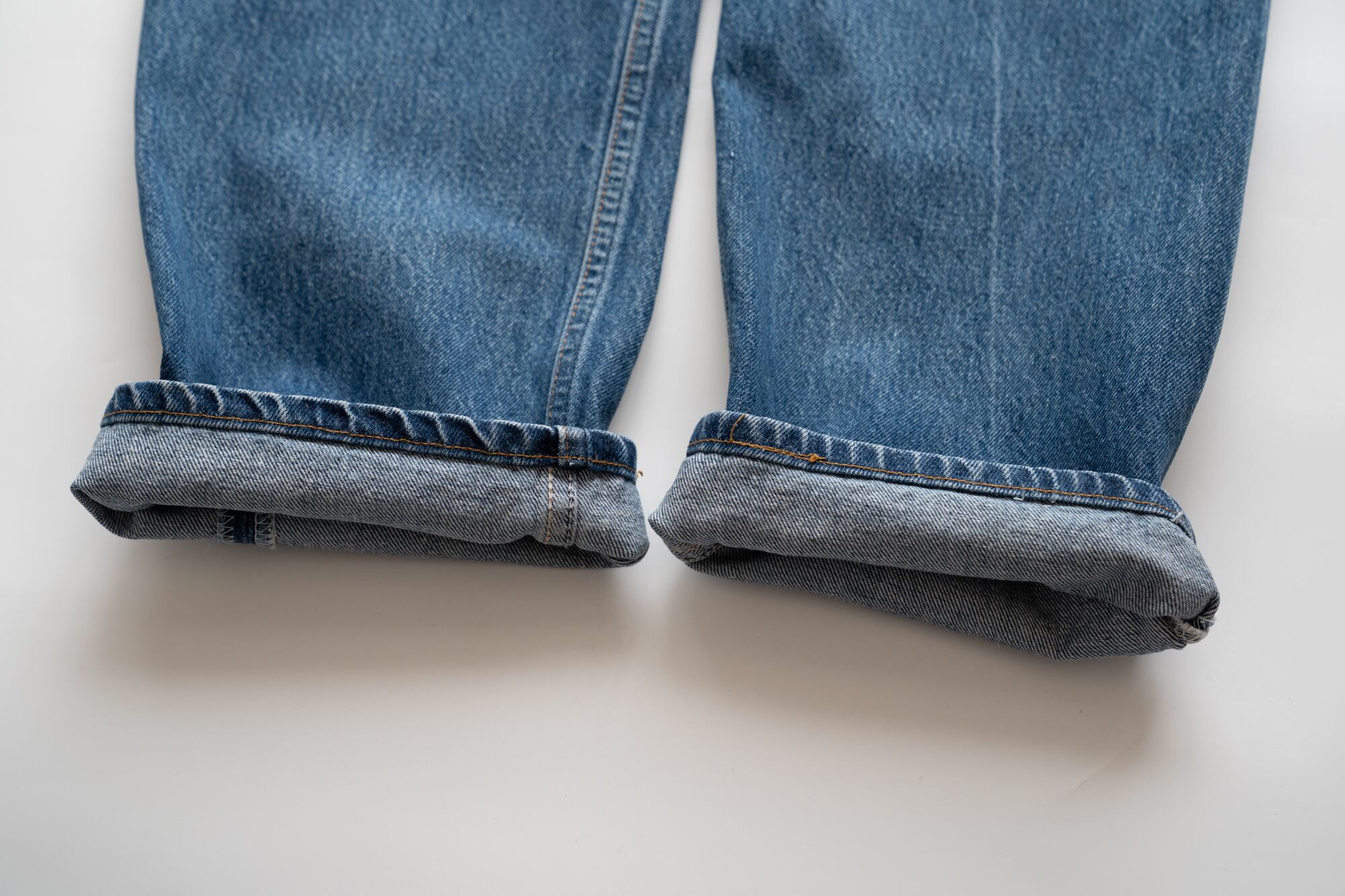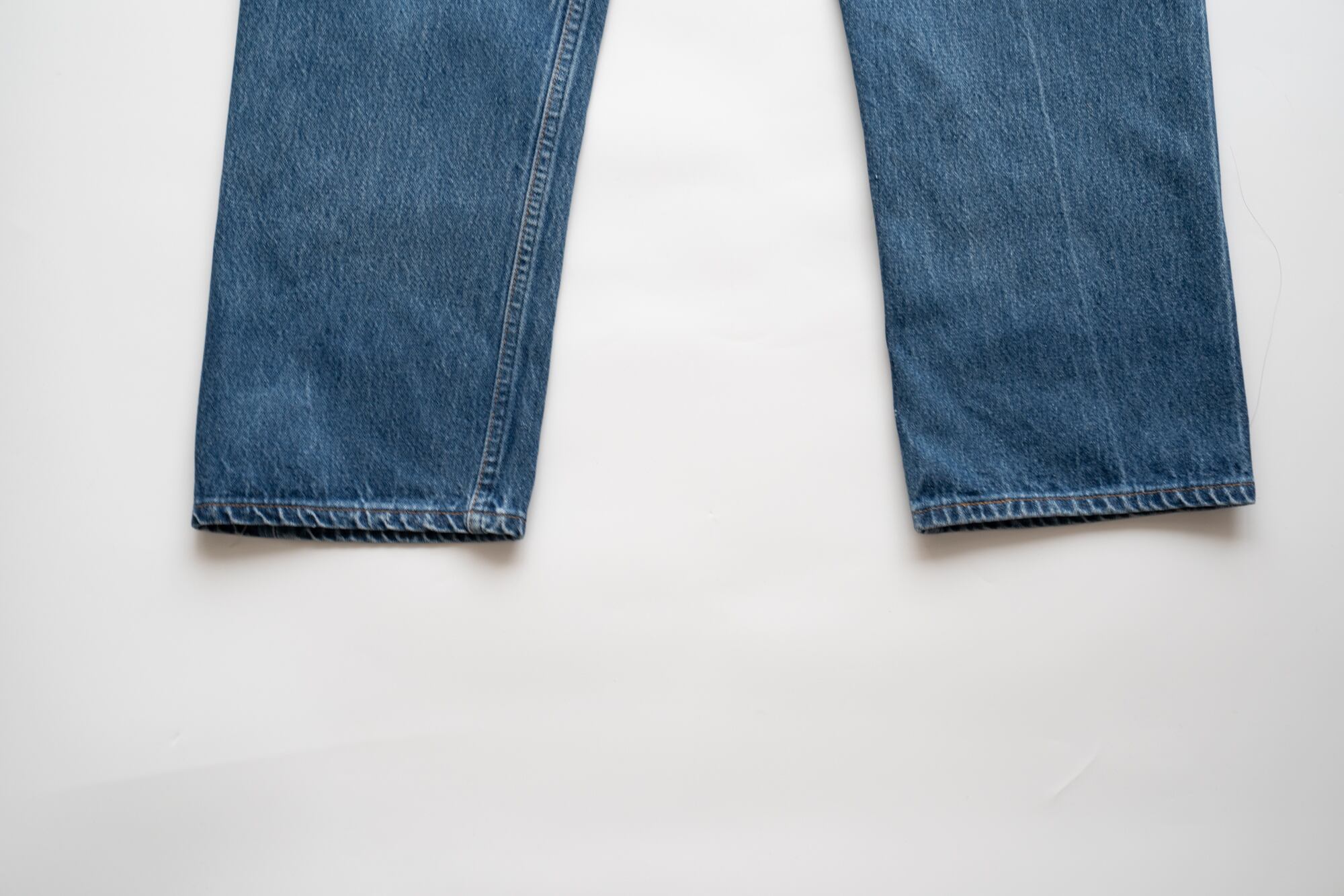 80年代後期のLevi’s 501は、まだアメリカ国内で生産されていた最終期のモデル。自然な色落ちと美しいアタリが出ており、バランスのとれたフェード感。濃淡のコントラストが程よく、スタイリングにも取り入れやすい一本です。
