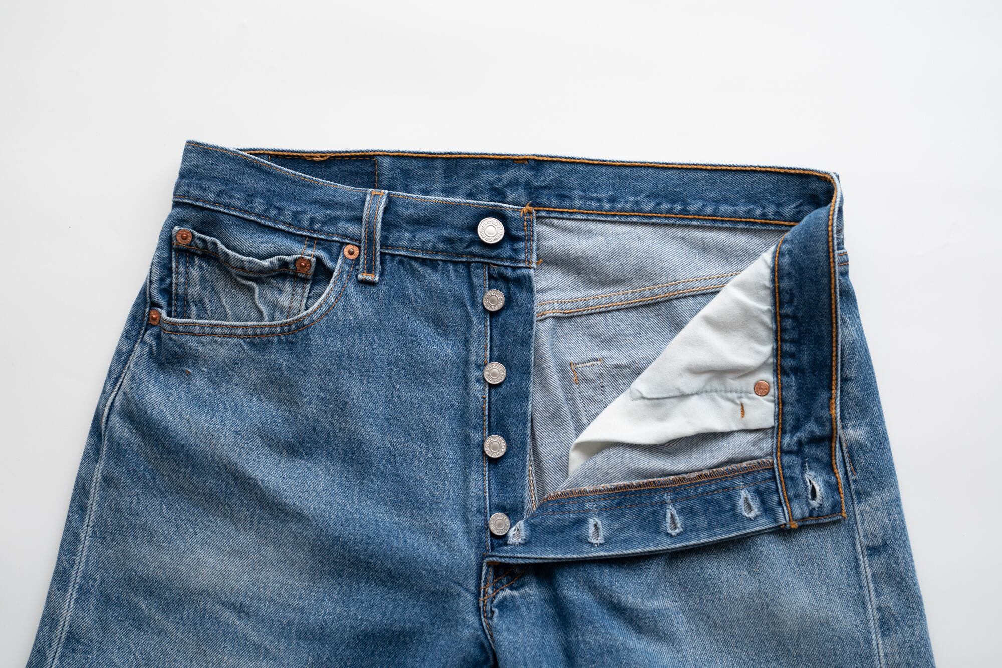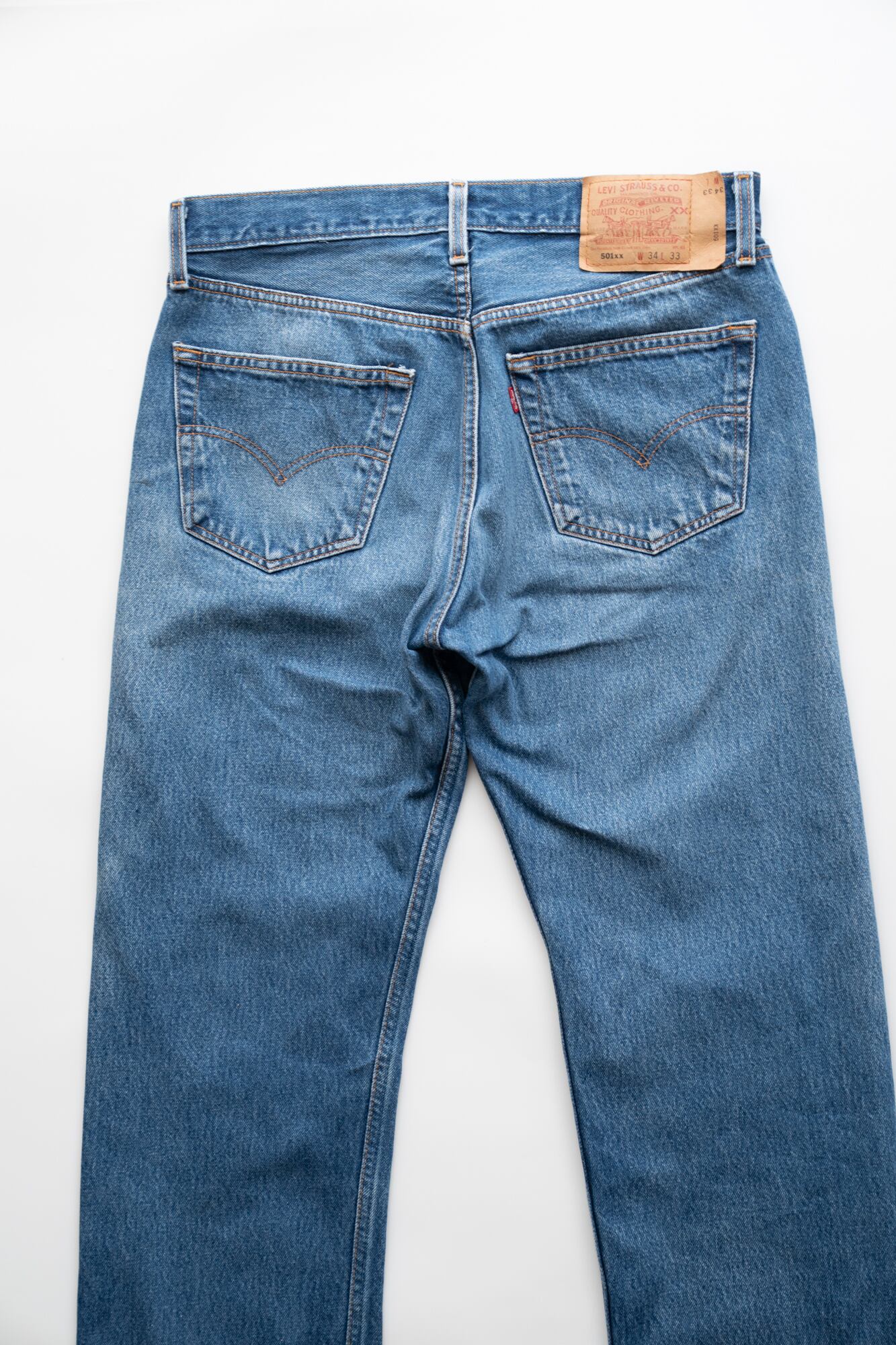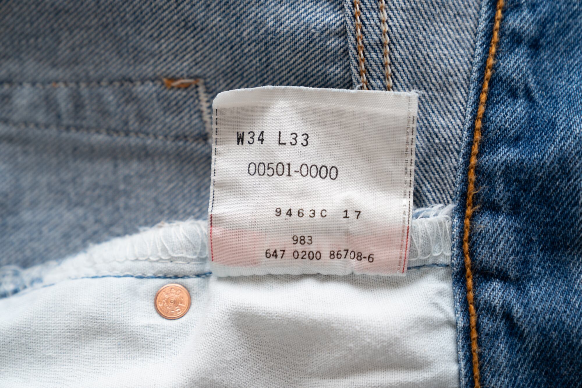 こちらは Levi’s(リーバイス) 501 / MADE IN MEXICO(2000年2月製造) のデニムです。2000年代初頭のモデルで、風合いと色落ちが魅力の1本。コンディションの良い個体は年々希少になっています。