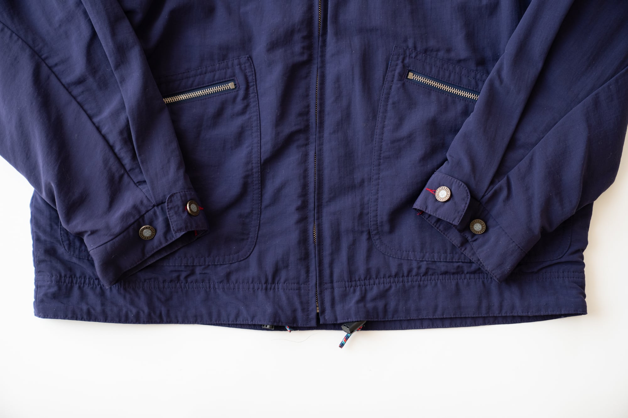 外地はナイロンで裏地はネイビーカラーのフリースです。