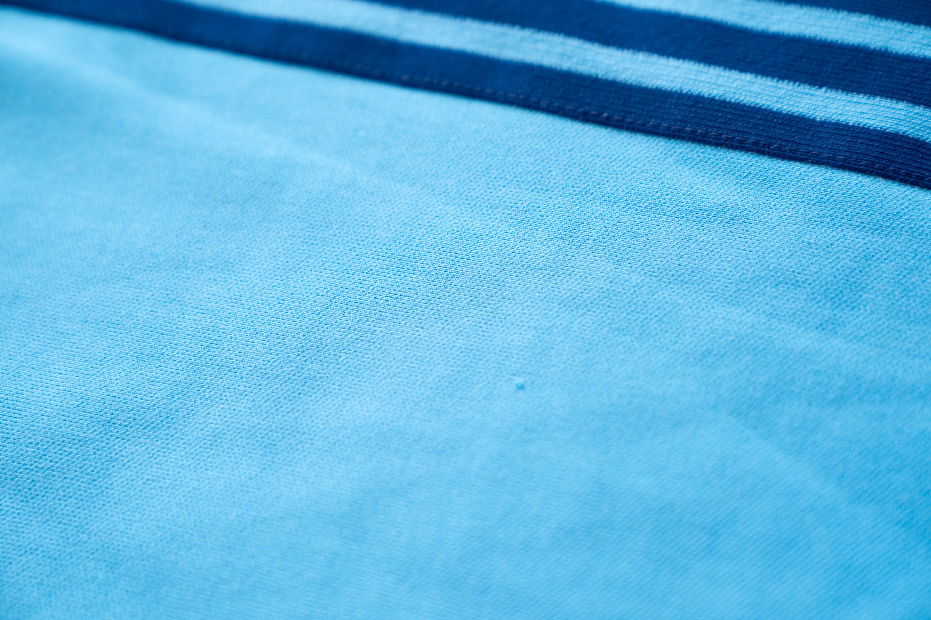 ライトブルー×ネイビーの配色が爽やかで、コットン混の柔らかな風合いが特徴です。